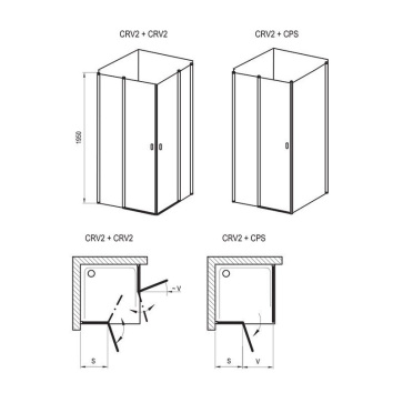 Душевой уголок Ravak Chrome CRV2-100, профиль сатин, стекло прозрачное