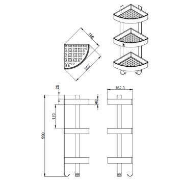 Полка угловая Azario трехэтажная, хром матовый (AZ-833-3)