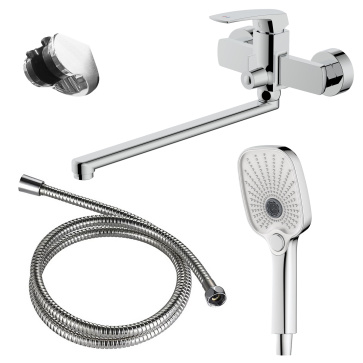 Смеситель для ванны Azario Conda керамический картридж, длинный излив, с ручным душем, шланг 150 см, хром (AZ-K1711)