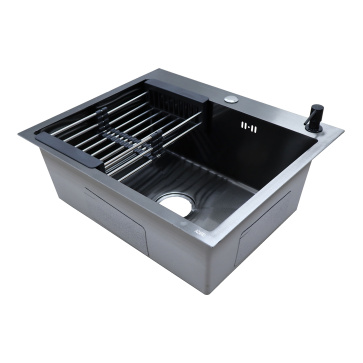 Кухонная мойка AZARIO NICOLE 500х500х220 нержавеющая сталь, в комплекте сифон, диспенсер, коландер, черный(AZB5050N)