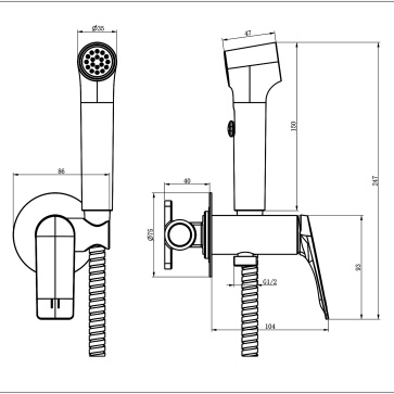 Гигиенический душ Azario Conda со смесителем, керамический картридж, шланг 150 см, черный матовый (AZ-K2511B)