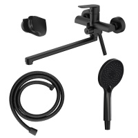 Смеситель для ванны Azario Alanti керамический картридж, длинный излив, с ручным душем, шланг 150 см, черный матовый (AZ-K1732B)