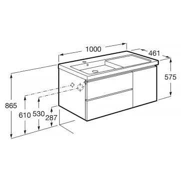 Тумба под раковину Roca DOMI 1000 мм, подвесная, левая, 2 ящика, белый глянец (A857477806)