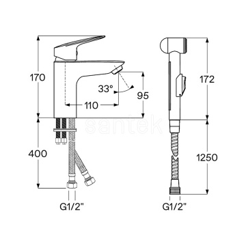 Смеситель для раковины Santek Таос с гигиеническим душем, керамический картридж, хром (WH5A08009C001)