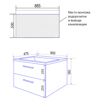 Комплект Azario тумба Ника 90 900х475х560 подвесная с раковиной Monte 90, белый глянцевый (CS00089922)