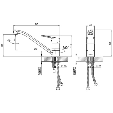 Смеситель для кухни Azario керамический картридж, хром (AZ-WSA654235AJ)