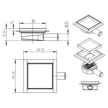 Душевой трап Loranto LIBRA 150x150 мм боковой сток, решетка из нержавеющей стали под плитку, гидрозатвор сухой (3065.0Y050K.015.1)