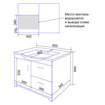 Комплект Azario Тумба Эстима 80/2 795х447х555 подвесная, с раковиной Астория 80, графит (CS00094589)