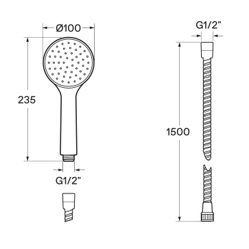 Душевой комплект TETIS COSMO: смеситель на 2 выхода, верхний душ Ø 200 мм, ручной душ ZEN с водорозеткой, шланг 150 см, цвет хром (M00760.030)