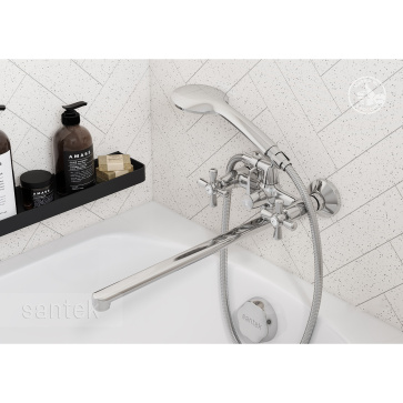 Смеситель для ванны Santek Рокс длинный излив, с ручным душем, керамическая кран-букса, хром (WH5A12014C001)