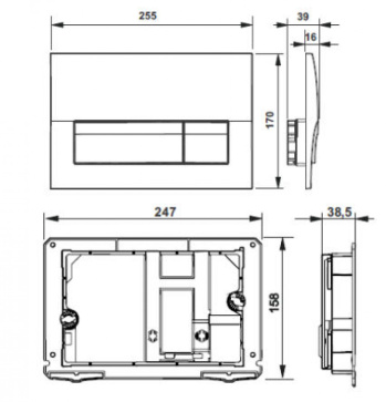 Кнопка смыва AZARIO NEW-TS механическая, двойной смыв, квадратные кнопки, ABS пластик, сатин (AZ-ABS-001-GG)