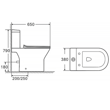 Унитаз-моноблок Creo Ceramique ONE 370х720х760 безободковый, в комплекте с быстросъемным сиденьем микролифт (ON0101)