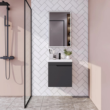 Комплект тумба Итана Sky 50 493х343х570 подвесная, с раковиной Clarissa 50, графит (CS00091691)